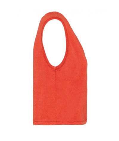 Camiseta de mujer ecorresponsable sin mangas con isotipo estampado.