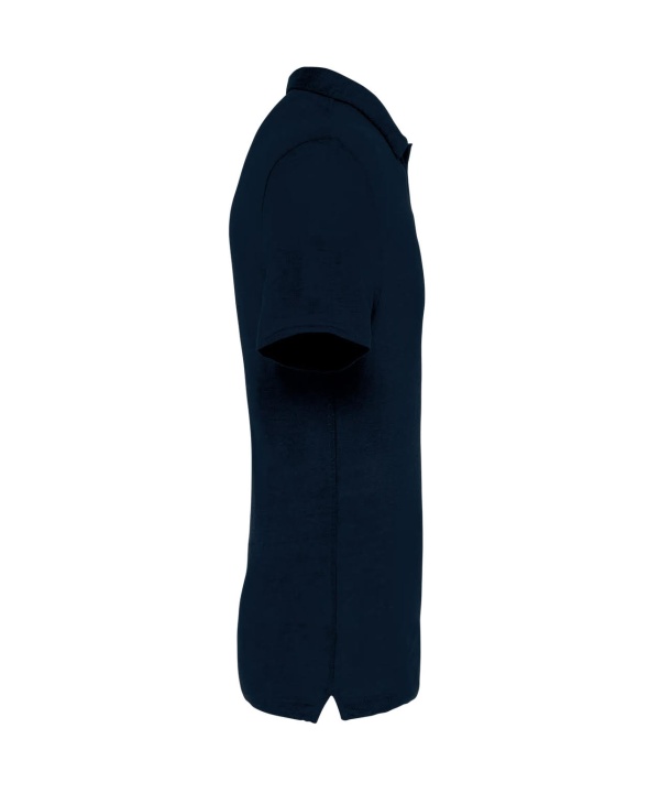 Corte ajustado. Con cuello y plaqueta tipo polo en V, sin botones en el material principal. Doble pespunte en el bajo de las mangas y bajo la prenda. Abertturas laterales con tira cubrecosturas interior de acabado en el material principal. Media luna en la espalda.