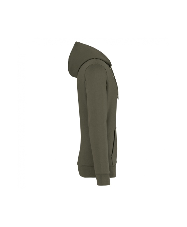 Sudadera unisex con capucha 85% algodón orgánico 15% poliéster reciclado postconsumer con logos delantero y trasero a todo color.