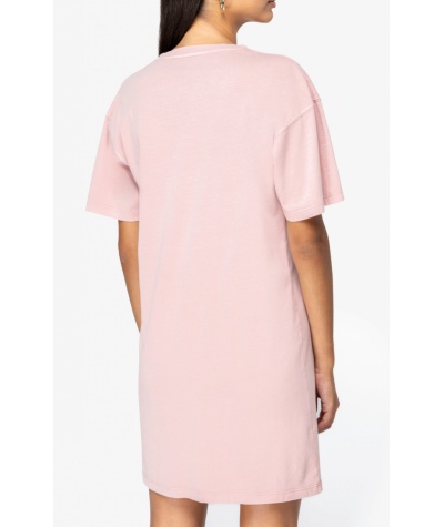 Vestido camiseta 100% algodón orgánico con mangas oversize y logotipo con eslogan en la parte trasera.