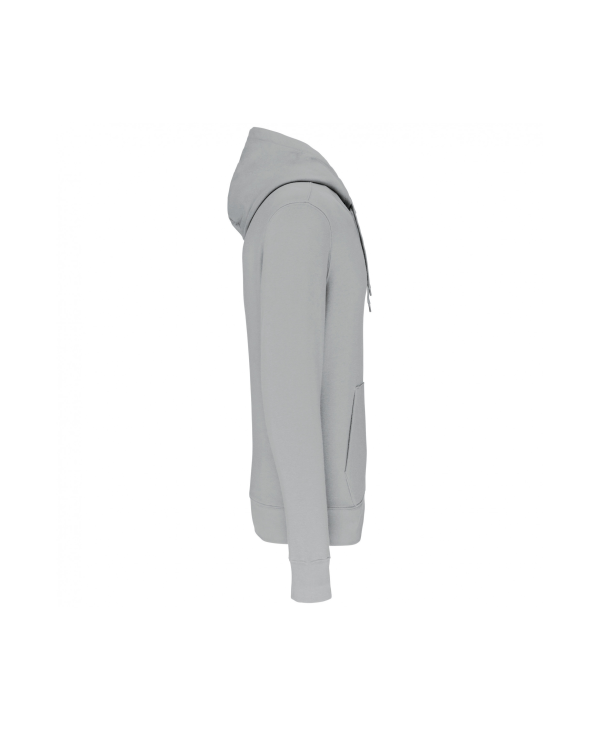 Sudadera unisex con capucha 85% algodón orgánico 15% poliéster reciclado postconsumer con logos delantero y trasero a todo color.